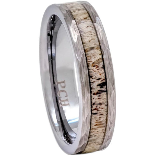 Tungsten Carbide Antler Ring With Hammered Finish, 6mm Comfort Fit Wedding Band