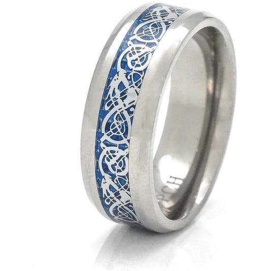 Titanium Blue Dragon Celtic Ring, Irish Wedding Band, 8mm Comfort Fit Wedding Band