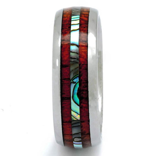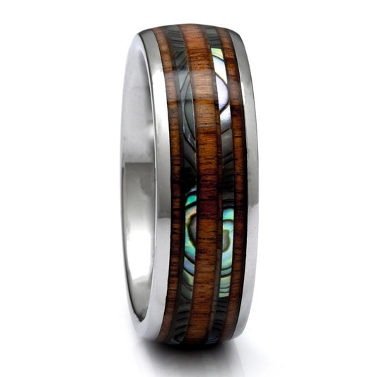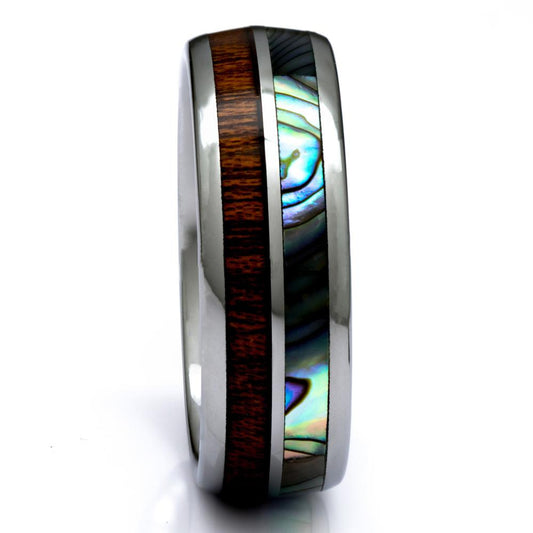 Hawaiian Koa Wood Ring With Abalone Inlay, 6mm Titanium Wedding Band