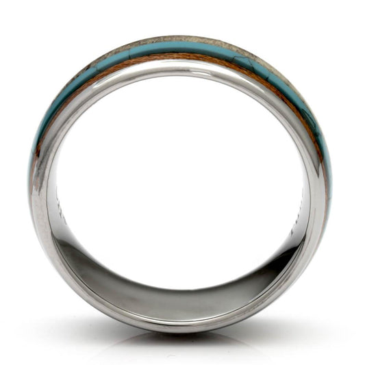 Titanium Ring With Hawaiian Koa Wood Inlay and Turquoise, 8mm Comfort Fit
