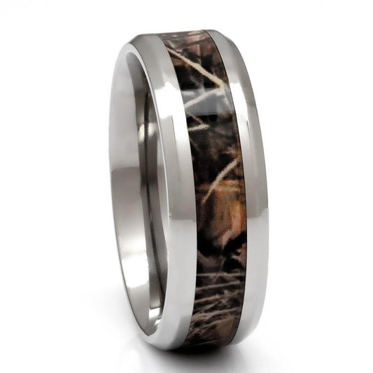 Men's Titanium Camouflage Ring, 8mm Comfort Fit Wedding Band