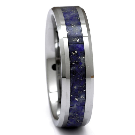Tungsten Ring With Blue Lapis Lazuli Inlay, 6mm Comfort Fit Wedding Band