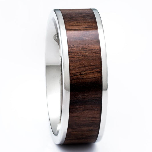 Titanium Ring With Koa Wood Inlay, 8mm Comfort Fit Wedding Band