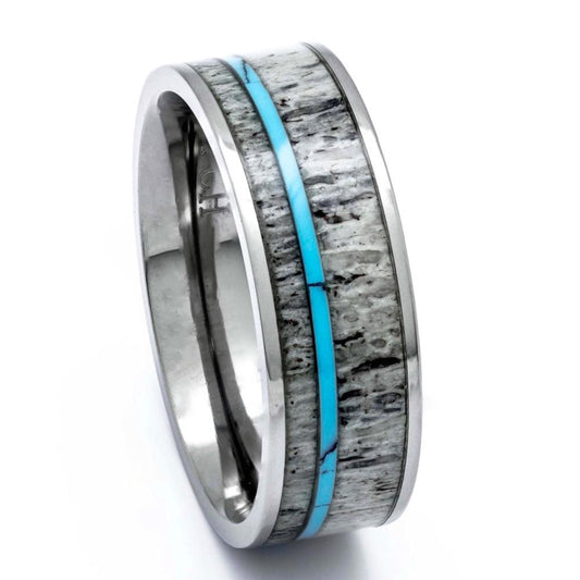 Titanium Antler Ring With Turquoise Inlay, 8mm Comfort Fit Wedding Band
