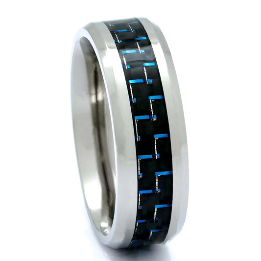 Titanium Ring With Blue Carbon Fiber Inlay, 8mm Comfort Fit Wedding Band